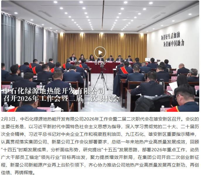 中石化绿源地热能开发有限公司召开2026年工作会暨二届二次职代会
